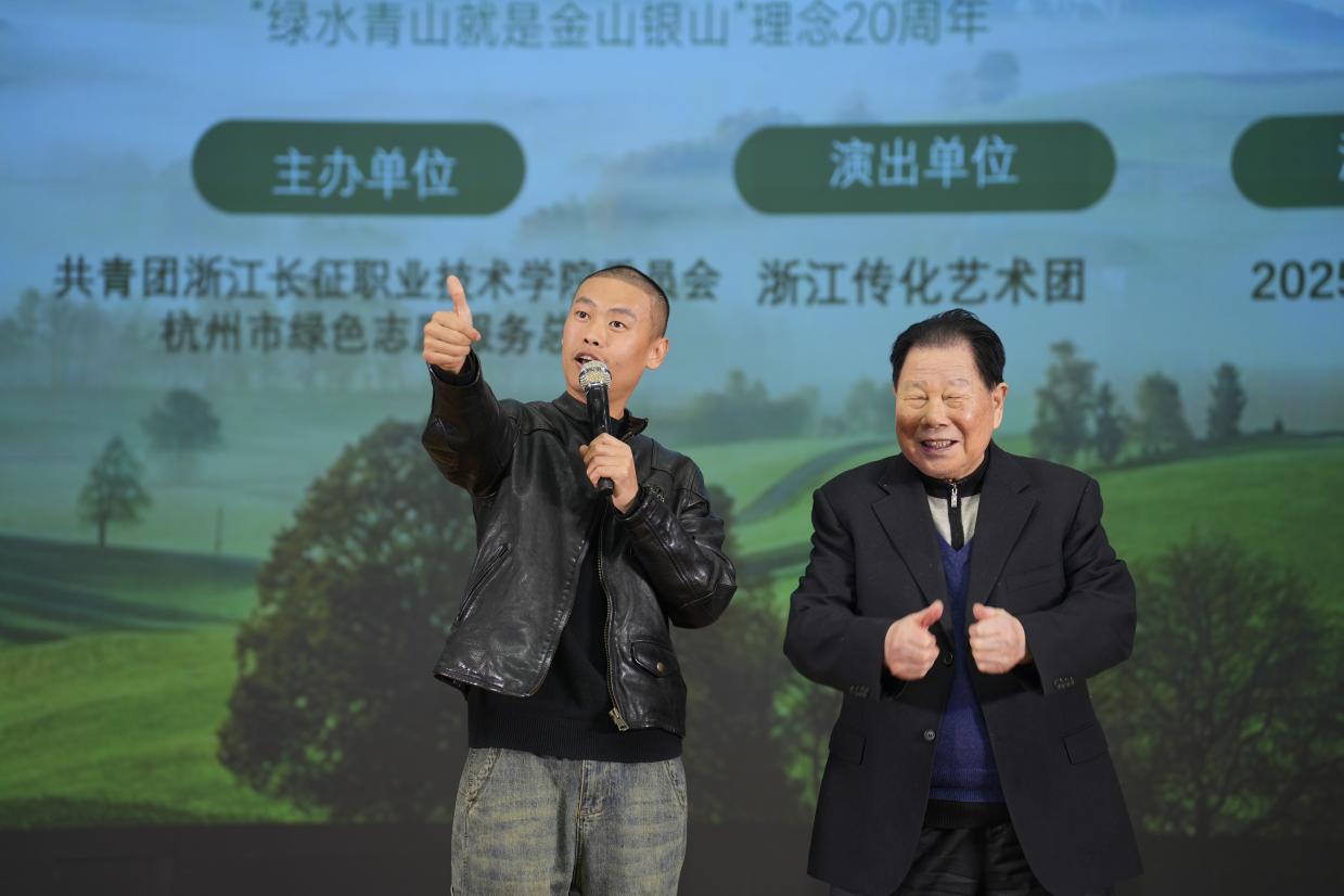 授旗仪式后,浙江传化艺术团带来了一场环保主题文艺演出。欢快的歌舞、诙谐又发人深省的小品轮番上演,演员们以精湛的表演生动诠释绿色生活的重要意义,将环保理念融入艺术表达之中。